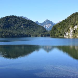ホーエンシュヴァンガウの町で自由時間があり散策。湖も凍っていて遠くに見える山々も雪景色できれいでした。