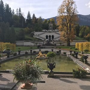 リンダーホーフ城は、ルートヴィヒ2世が建てた城の中で、唯一完成した城です。城内は、ロココやバロック様式をとりいれ、1階で用意した食事をテーブルごと2階の食堂にせりあげる装置など、ルートヴィヒ2世のこだわりが凝縮されています。庭の噴水や、幻想的なヴィーナスの洞窟なども必見です。