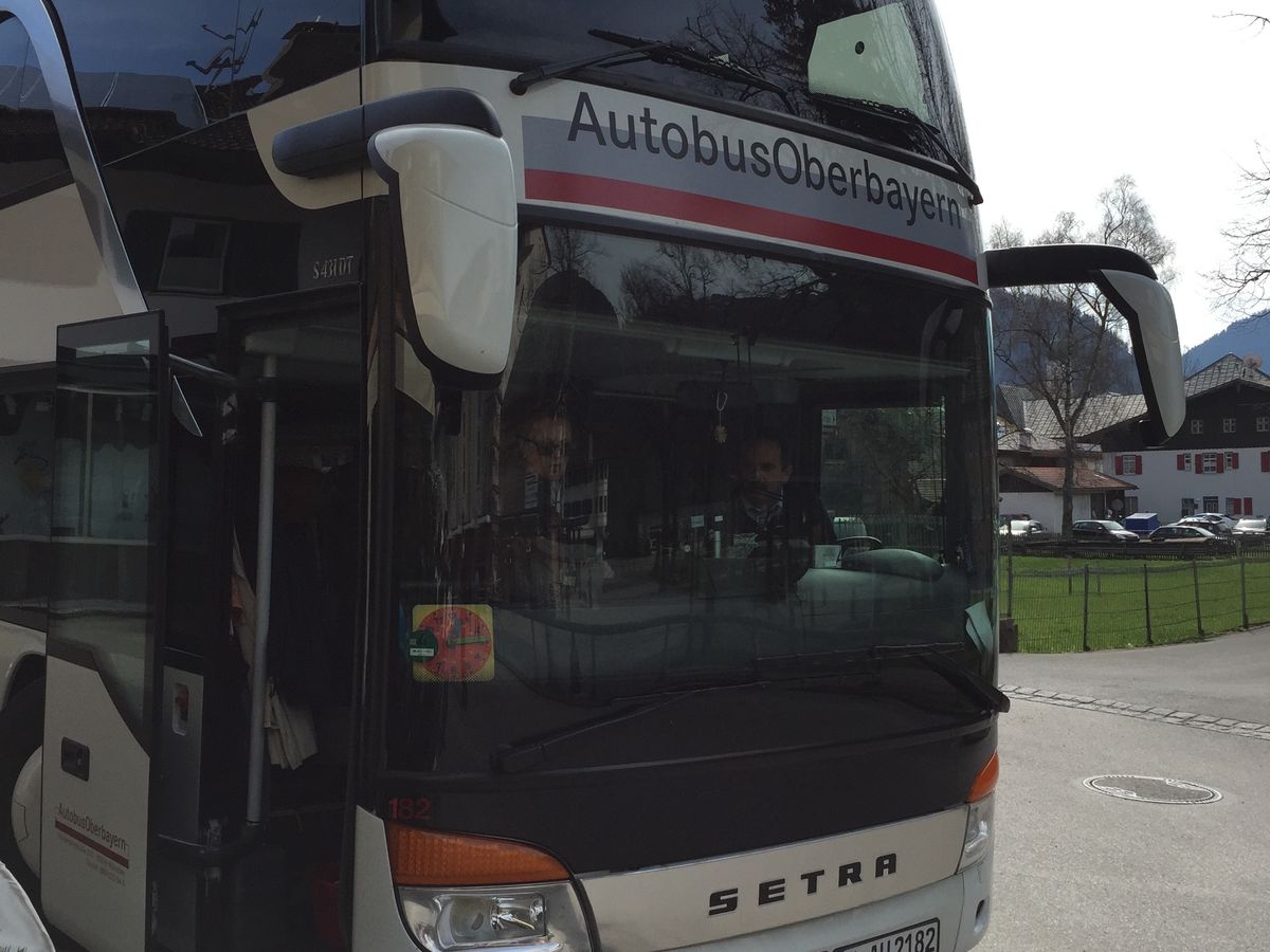 当日、ミュンヘン中央駅近くのデパート前のバス停留所に集合!二階建てのバスに乗車。集合時間ちょうどに乗り込みましたが、出発までは30分ほど車内で待機していたかと思います。気が付けば車内は満席で、人気のツアーなのがうかがえました。(日本人は私たちだけでした)出発後、ガイドさんの今日のスケジュール説明などを聞きながらバスに揺られました。(英語です)