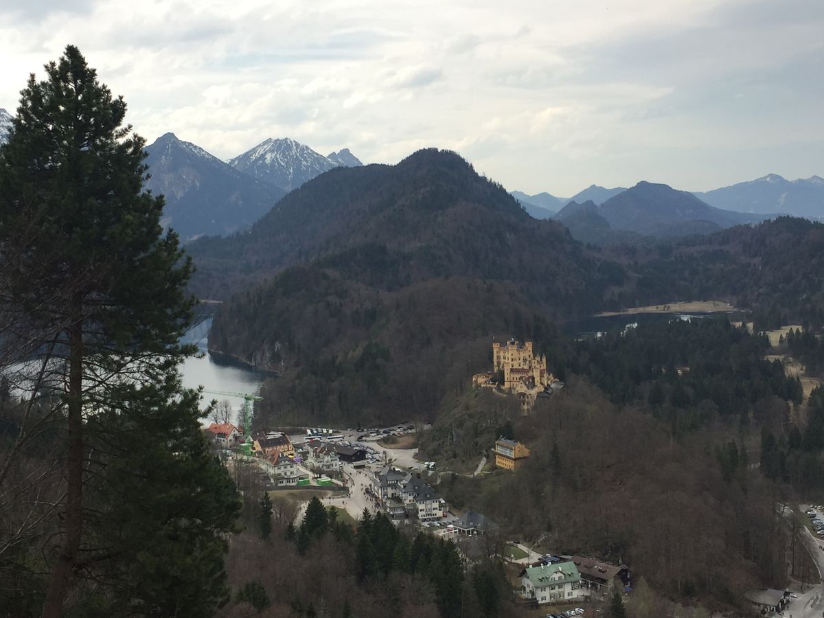 昼食がついていないので、ミュンヘンで、お弁当を用意し、バスに持ち込み移動中に食べました。そのため、シュバンガウでの自由時間が増えて前回近くまで行けなかったホーエンシュバンガウ城の周りを巡り、片道1.8ユーロのバスで、マリエン橋近くまで行き、冬には撮れなかった景色を撮ることができました。また、ホーエンシュバンガウ城には、お城パスポートが使えず、見学するなら1人12ユーロかかるのですが、予約ツアーなので、もし合わせて、見学するなら、かなりの時間を見越して、先に予約するかあきらめるかです。私たちは、あきらめました。