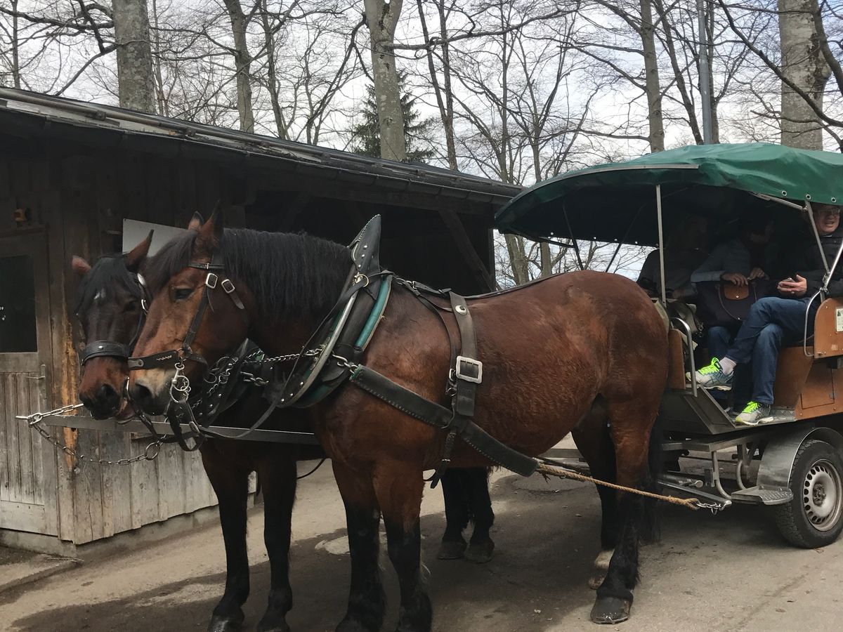 個人で同じコースをたどるのは時間的に難しくコストも掛かるので、効率よく回れるバスツアーにして正解だったと思います。リンダ―ホーフ城の中は、想像以上に豪華でした。オーバーアマガウの街の雰囲気が良く可愛いいお土産も沢山あったので立ち寄り時間がもう少しほしかったです。マリエン橋から見たノイシュバンシュタイン城は絶景でした。あらかじめ調べていたのに、ふもとのレストランの食事が美味しくて、ゆっくりしてしまい馬車に乗ると見学時間に間に合わなくなるのでバスにしました。残念でしたが、細い山道を軽快に走るバスも良かったですよ。