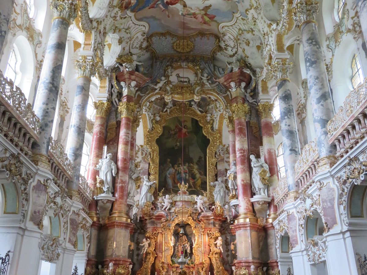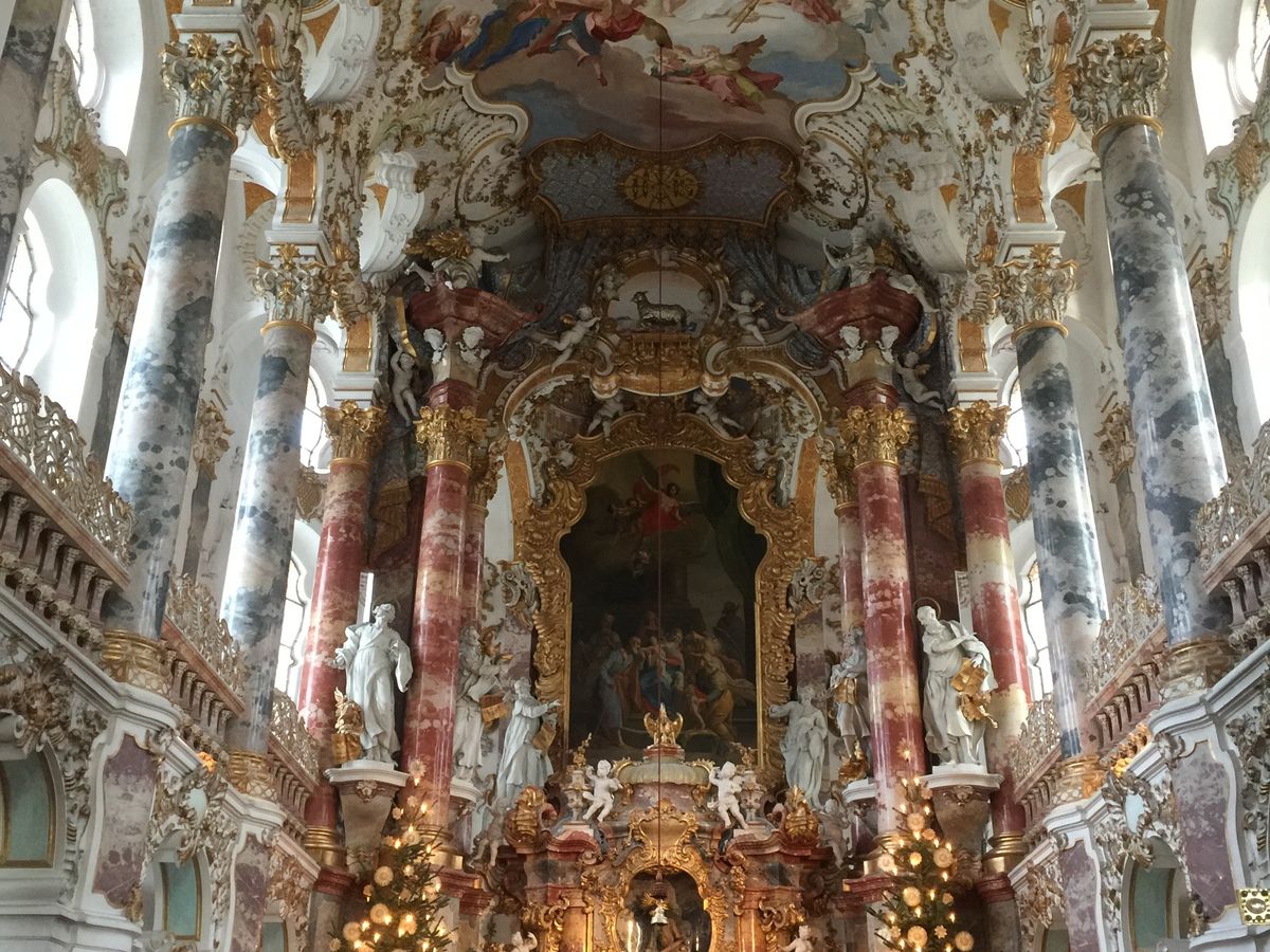 ヴィース教会は外見と内部のギャップに驚きました!内部の装飾や天井画は驚くほどに緻密で美しかったです。