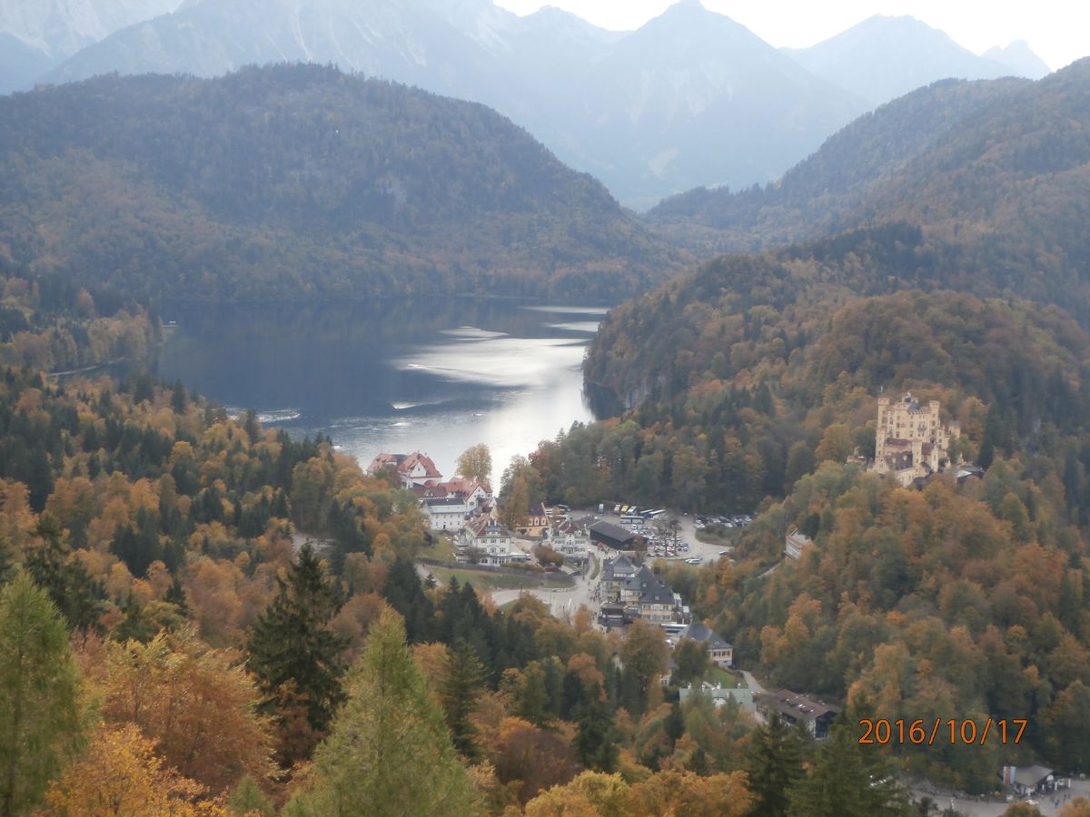 当日は朝から霧がかかり、途中のマリエン橋でもお城は見えず断念。ですが最後バスで帰る直前に霧が晴れて立派なノイシュバンシュタイン城が。感動もひとしおです。