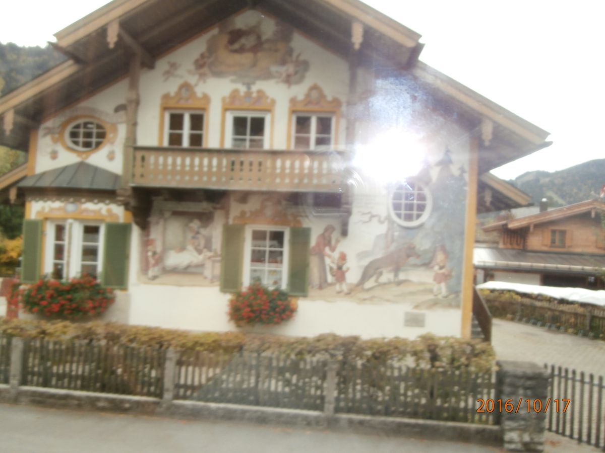 エッター通りにある「赤ずきん」「7匹の子ヤギ」「ヘンゼルとグレーテル」の壁画が描かれている民家の前をバスで通りますが、その時は速度を遅くして走行してくれるので、車内から写真をとることができました。