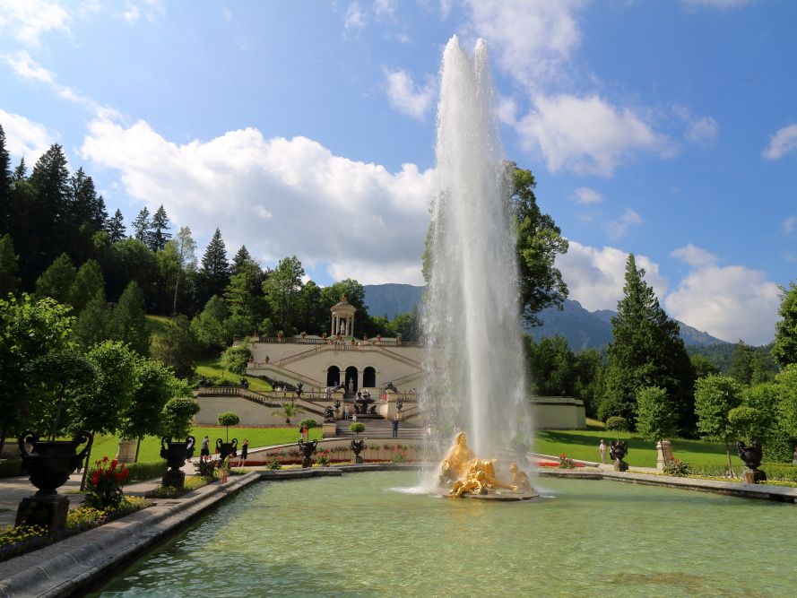 最後に向かったリンダーホーフ城は、外観はシンプルで小さな城に見えましたが、城内は案外広く、装飾がとても美しかったです。"魔法の食卓"があり、当時の城主の性格を垣間見る事ができ、とても興味深いものでした。