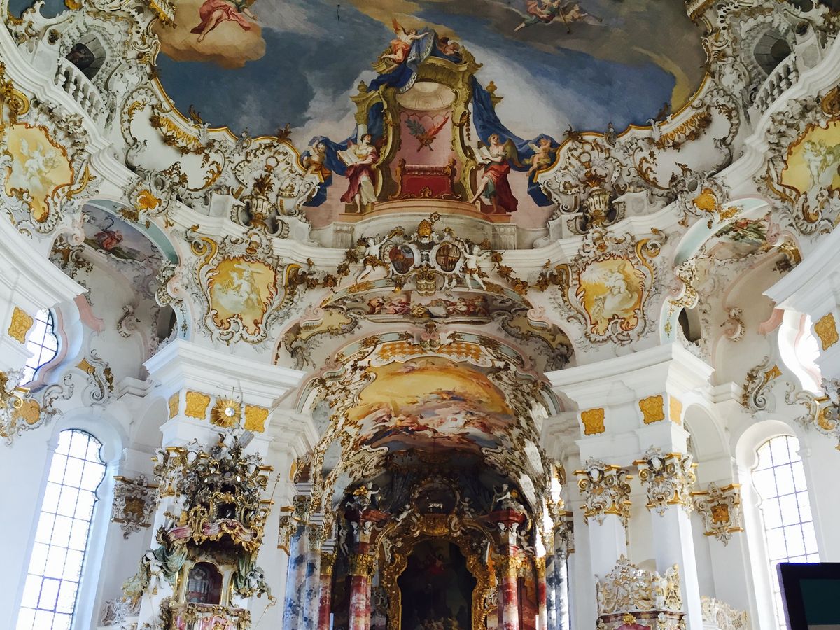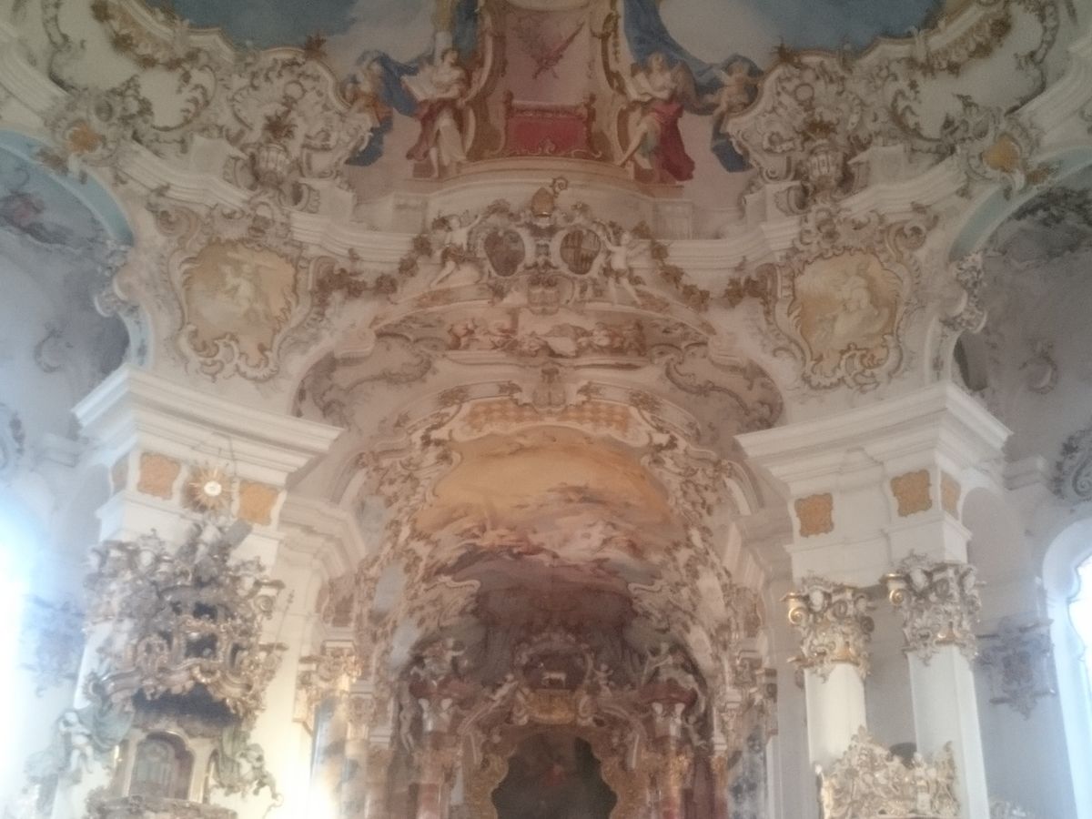ヴィース教会は、ロココ調の装飾が素晴らしく、周りの風景にも癒されました。