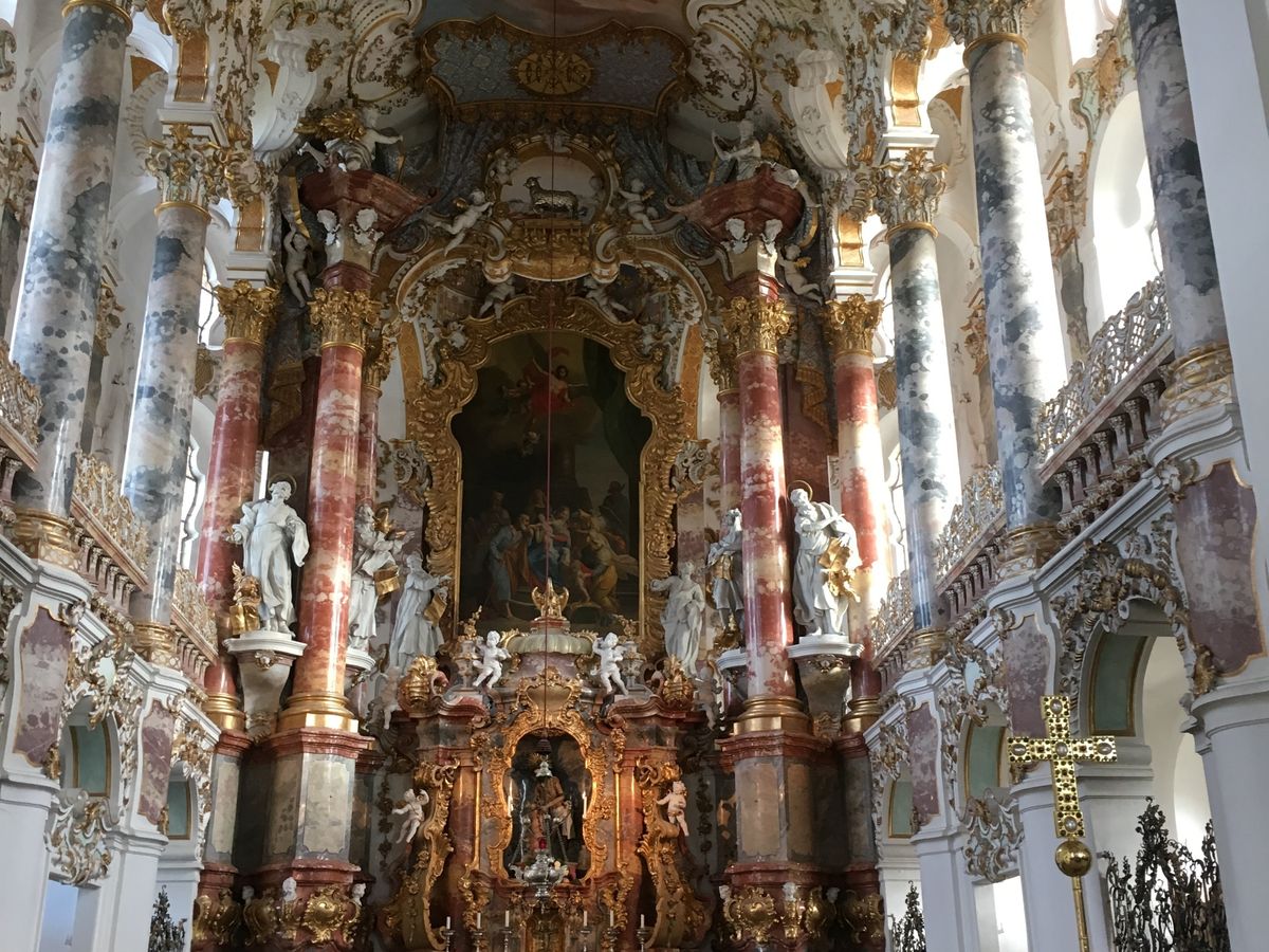 世界遺産のヴィース教会は、滞在時間はさほど多くはとられていなかったものの、観光客も少なく、充分にゆったりと見学ができました。シンプルな外観に反して、教会内はロココ調の装飾がとても美しく、行けて本当に良かったです。