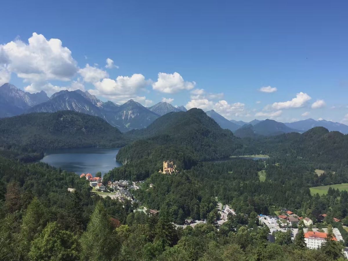 ノイシュバンシュタイン城は中世の城と思い込んでいましたが、なんとここ最近百数年前に作られた城であることが現地に行って初めて知りました。建物は近代的な造りで新しかったです。なんかテーマパークのようなところでした。城の中は写真禁止ですが、外の景色を撮るのはOK。1枚掲載しましたが、城からの眺めも絶景でした。
