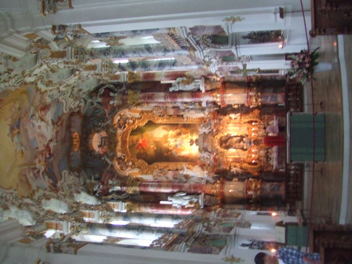 ヴィース教会では残念ながら、巡礼者対象の案内が行われていたため、主祭壇には近づけず、キリストが涙を流したという伝説の「鞭打たれる救い主像」を間近でみることは叶いませんでした。