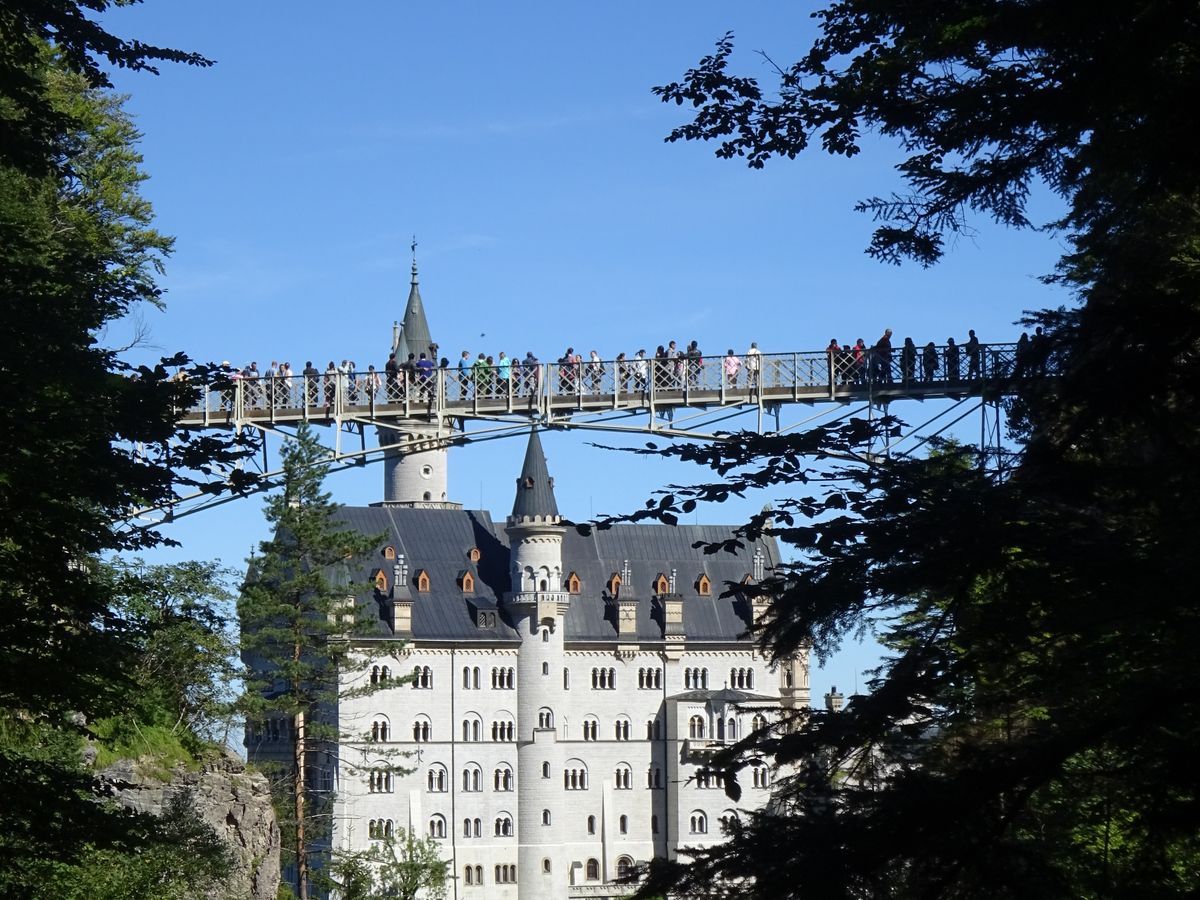 天気があまり良くなかったですが、橋がちょうど開通したばかりで、橋の上からノイシュバンシュタイン城が見られました。特にノイシュバンシュタインはチケットを購入するのに凄く並んでいて、個人で行くと大変だと感じました。ツアーを利用して良かったです。バス停にあるお土産屋さんにリモアのスーツケースがいっぱいありました。ミュンヘン市内のホテル近くにも売っていて、何度か見ましたが買っておいてもよかったかと後から思いました。オーバーアマガウの情報が少なく、見どころがよくわからなかったです。ガイドさんはアイスクリームを凄く勧めておられましたが、個人的にはもっとお店を見て回ったほうが良かったのかな?と思いました。物価も安いと言っておられたので…