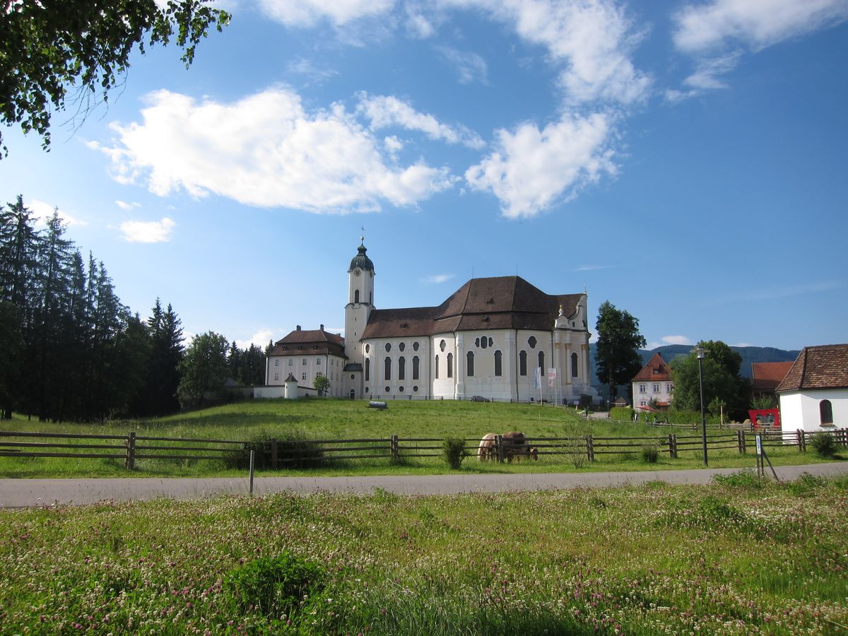 朝のヴィース教会周辺は気持ちがよく、リンダーホーフ城と同じく周りに人が少なかったので、綺麗に写真も撮れました。