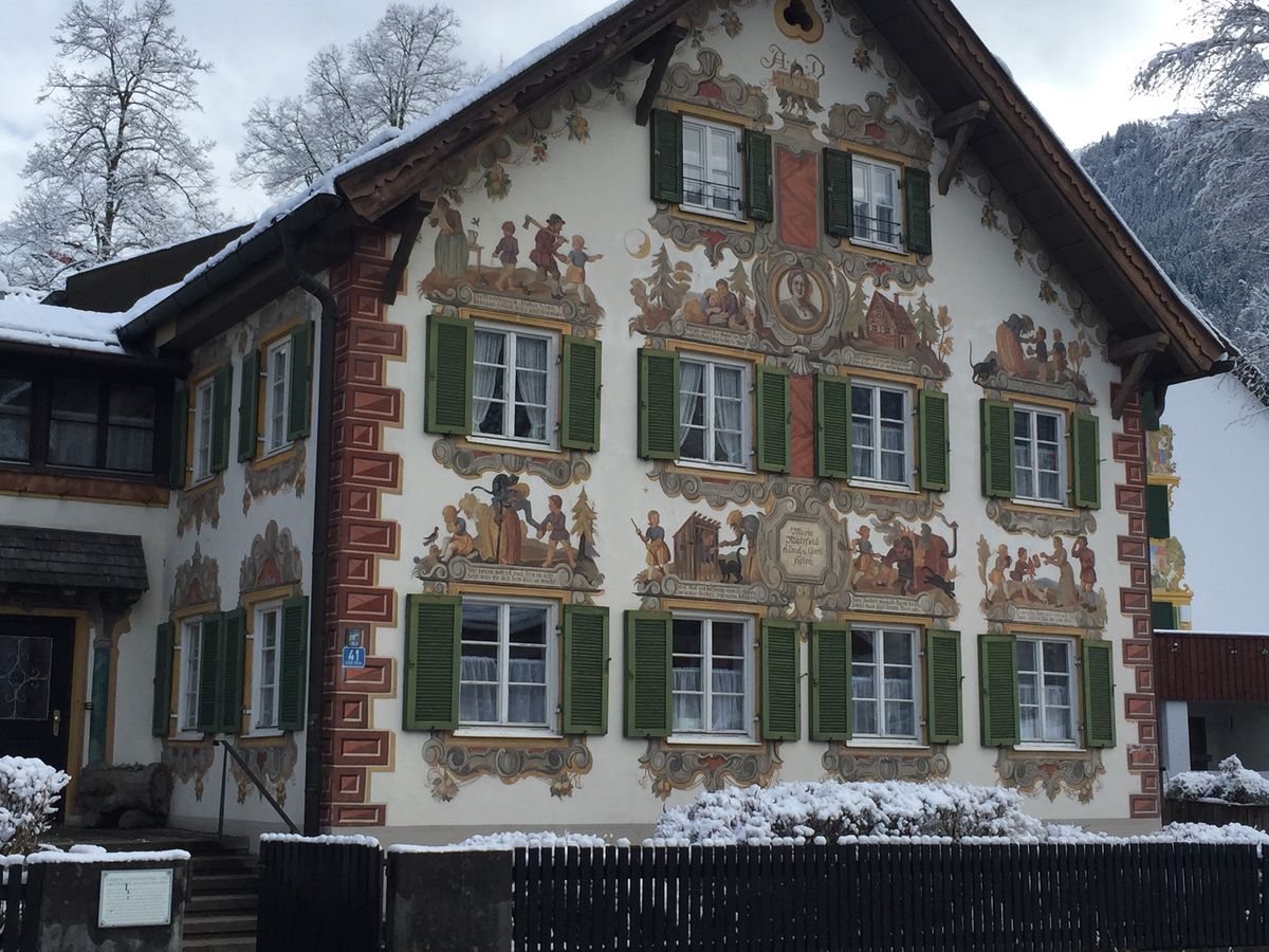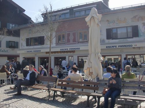オーバーアマガウは日曜で残念ながらお土産店等ほぼ閉まっていましたが、イタリアンジェラートやカフェ等開いている店舗もあったので、かわいらしい壁絵とともに楽しむことができました。
