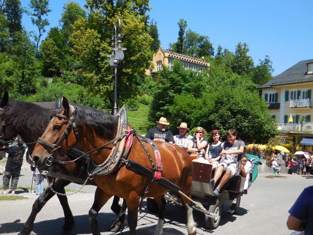【ノイシュバンシュタイン城】お城までは馬車か徒歩のどちらかで向かいますが、どちらも難点があります。馬車は6€ですが少々高い気もします。それに、結構待ちます。8名〜10名ほどしか乗れず、こうした時間の限られたツアーで回っている場合、焦ります。帰りは馬車を待っていては集合時間に遅れそうだったので徒歩にしましたが、かなりしんどいです。