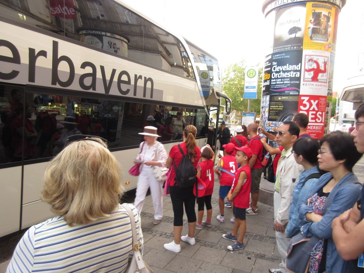ミュンヘンのバス停の場所はサイトの記載通りですが、数種類のツアーバスが並んでいる可能性があるため、念のためどのバスに乗るべきか係員に聞くことをおすすめします。バスの前にツアー番号が書かれているので、それを参照しても確認は可能です。