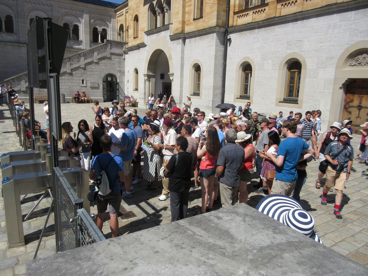 ・ノイシュバンシュタイン城へのチケットには入場時刻が書いてあります。その時間より早く入場することは出来ません。同じツアーの人たちを見てみると、みんな入場まで時間を持て余してるくらい時間に余裕がありました。