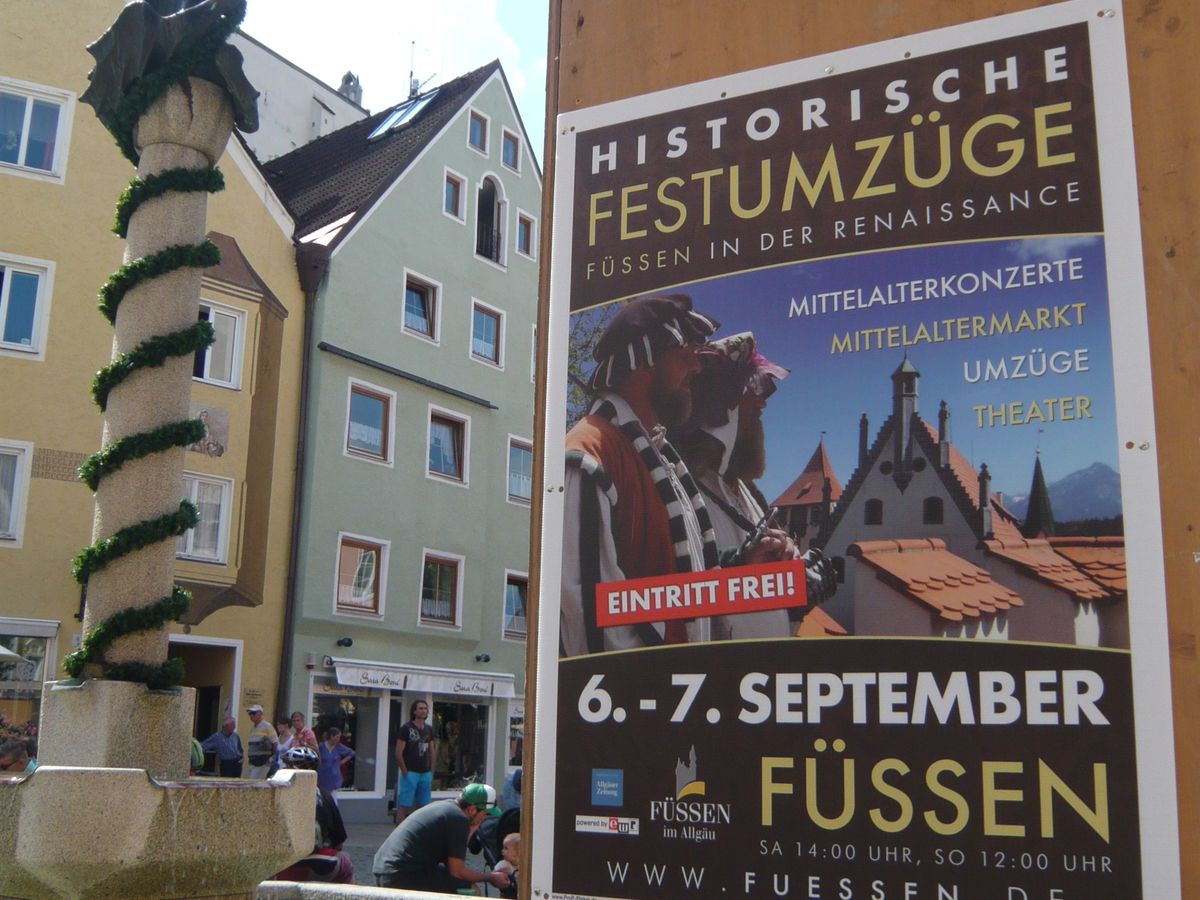 ノシシュバンシュタイン城は2度目であったので、ヴィース教会にも行けるこのツアーを選びました。意外とおもしろかったのが、フュッセンのお祭り☆ただ年に2日しか行っていないので、たまたま遭遇しただけですが、もし重なる方がいらしたら是非行くことをお薦めします!中世ルネッサンス期の格好をした人たちや見物客がいっぱいで、ガイドさんもびっくりするほどの賑やかさ。普段はガイドするものも無いくらい小さくて静かな街だそうですが、この日ばかりは街のあちこちで音楽と踊り、屋台が出ていて楽しい雰囲気でした。