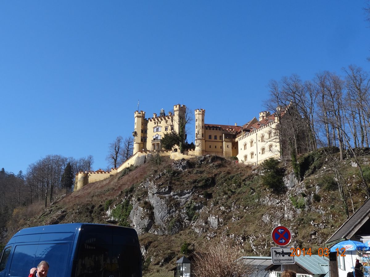 ノイシュバンシュタイン城までの坂道はほとんどの人か歩いており、ゆっくり歩いても30分も掛からなかったです。途中馬の汚物が落ちてるので気を付けてくださいね(^^ 3月27日に参加しましたが日本人は8人ほど参加してました。ツアー終了は19時の予定でしたが18時にはミュンヘンに帰ってきました。 ツアーは大型バス2台で並行して行っており、1台はドイツ人(ドイツ語)だけでもう1台はその他の人(日本人など英語のツアー)が乗るように分けられているため間違えて乗らないように自分のバスのナンバープレートを覚えておいた方が安心です。では、Have a nice trip!!