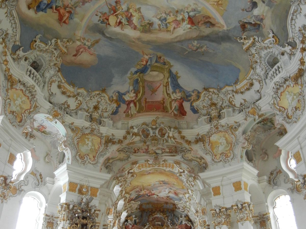 ノイシュバンシュタイン錠メインで行ったツアーでしたが、ヴィース教会の素晴らしさにもとても感動しました。天井至る所に描かれている絵は、広さと綺麗さに圧倒されるものがあり、入り口から入るとしばらく動けませんでした。