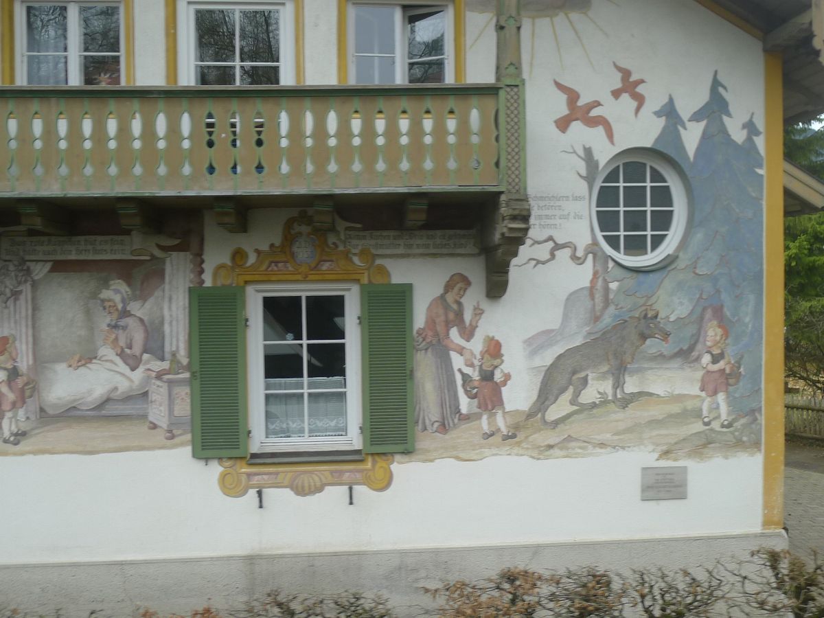 リンダーホーフ城の次に立ち寄った場所では、童話の世界が壁面に描かれています。