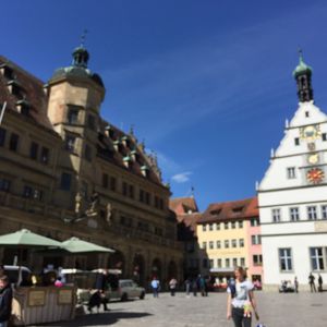 ローテンブルクはタリンにそっくりの中世の街。広場入り口にあるレストランは日本語メニューがある上、味もとてもよかったです。娘にシュタイフのぬいぐるみが購入できて満足です。