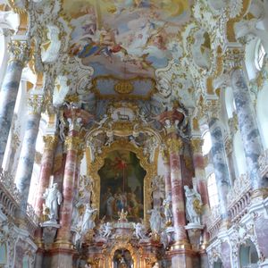 朝ホーエンシュバンガウのバス停から乗車し、途中のヴィース巡礼教会で30分ほどの休憩をとりましたので内部も見学できました。お昼頃にアウクスブルクに到着しましたので昼食をとったあとツアーに含まれていた市内観光に参加しました。英語による案内でしたが市庁舎内の黄金の間やフッガーライに入場見学しながら市内を2時間ほどかけて徒歩でまわりました。