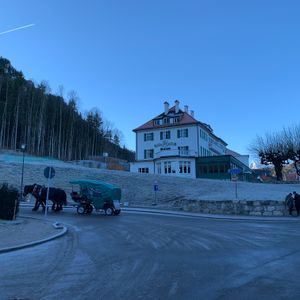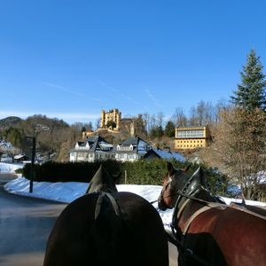 二月初旬参加ですがノイシュバンシュタイン城は暖冬のため奇跡的にシャトルバスが動いており行きはバスで、帰りは馬車で移動しました。