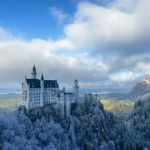 年末に訪問しました。この時期は霧の発生確率が高いので注意です。しかし、ツア-当日は晴天。霧も城に着くまでには消え、途中で立ち寄るお土産やさんからは城が綺麗に良く見えました。城に到着すると、長者の列。しかし、私達ツア-客は入場優先してもらえるので、ご安心を。寒い中待たずに済むし、乗換で苦戦する事もありません。そして楽しいツア-ガイドさんがご一緒して下さるこのバスツア-に参加して本当に良かったです。ラッキ-なら、マリエン橋から城も見れるかも。。。
