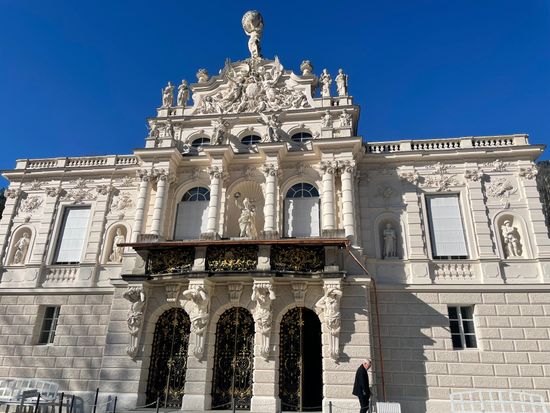 リンダーホーフ城のお庭は春や夏が見頃だと伺いました。今回12月に参加しましたが、お庭の花瓶は全て箱で保護されていた為、見られませんでした。