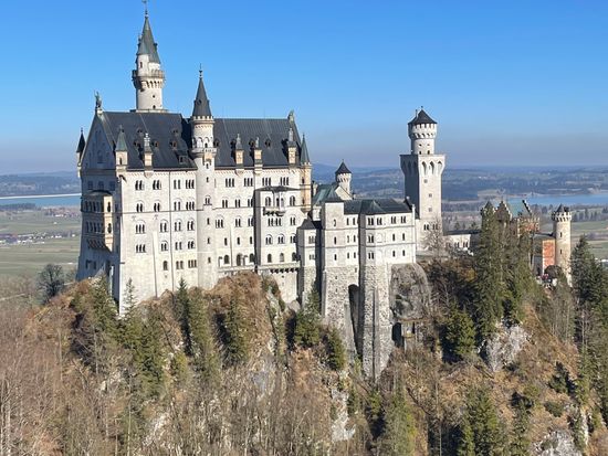 城の目の前に広がるアルプ湖が凍結し、太陽の光が注ぎ込んで湖に反射した先にアルプスの山々が連なる様は一見の価値ありまです。空気までもが凛とした極寒の中で荘厳な城が一層引き立ち、冬のドイツで素敵な時間を過ごすことができました。