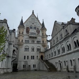 初めてのドイツ旅行で念願のノイシュヴァンシュタイン城を訪れました。あいにく濃い霧と雨に見舞われましたが、ガイドさんが霧が一瞬晴れたタイミングを教えてくださり、マリエン橋からお城の写真を撮ることができ感激しました。歴史や見どころも丁寧に説明してくださり、理解が深まったことでお城の魅力を何倍にも感じられました。リンダーホーフ城やコロマン教会、ヴィースの巡礼教会にも立ち寄れて満足度は非常に高かったです。バイエルンの天気は変わりやすく、歩きやすく汚れてもいい靴と服装で、雨具は必須です。アルプスに囲まれたお城の景色は本当に神秘的で、一生の思い出です。