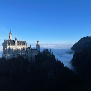 綺麗な青空でノイシュバンシュタイン城も映え、
