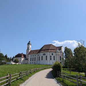 シンプルな外観とは裏腹に、一歩中に足を踏み入れると、色鮮やかな天井のフレスコ画と華やかな柱の飾りが見る者を圧倒します。1983年にはユネスコの世界遺産にも指定され、ロマンティック街道では、欠かせない観光スポットの一つになっています。