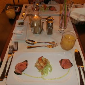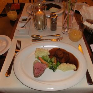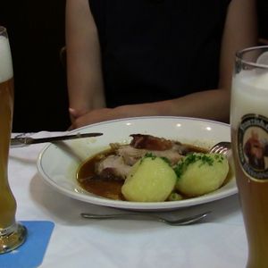 ミュンヘン、レジデンツ宮殿の礼拝堂でコンサートのあと、フランティスカーナでバイエルン郷土料理をいただいてきました。宮殿入り口にコンサートの看板が出ています。受付は極めて簡単ですがコンサートはすばらしいものでした。皆さん、正装というわけではありませんが大人しい服装をしていました。食事はさすがバイエルン料理です。見るからにお腹いっぱいになります。ビールも4杯の飲み比べで、料理もビールもおいしいのですが、ちょっと多すぎて大変でした。