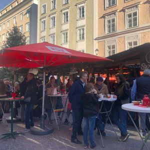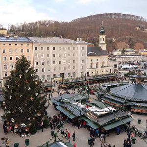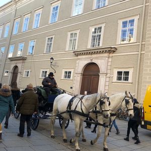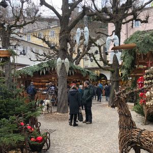 ザルツブルグに到着し、バスを降りてガイドさんから見どころを聞きつつ、みんなで街の中心地まで歩きました。そこから4時間ほどの自由時間がありました。私たちは観光案内所で地図を受け取り、クリスマスマーケットで昼食後、大聖堂を見学し、ホテルザッハーでザッハトルテを食べ、ミラベル庭園を見学しました。私たちはのんびり観光しましたが、モーツァルトの家などを見学する時間も十分にあると思います。なお、クリスマスマーケットに併設された仮設のお手洗いは暖房完備でとても清潔でした。