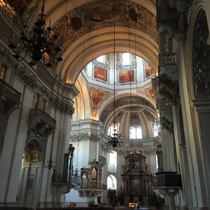ザルツブルクでの自由行動の時間は3時間程度と短めです。ゆっくり歩きまわりたい方は自分で行く方が満足できるかもしれません。私が自由時間で回れたのは、ノンベルク修道院(教会部分だけ入れます)、大聖堂、モーツアルトの家と生家両方を駈け足見学、でした。とにかくまずは観光ということで、昼食は夕方の集合時間直前に集合場所近くのファーストフード店で20分で食べました。