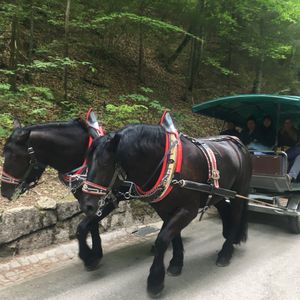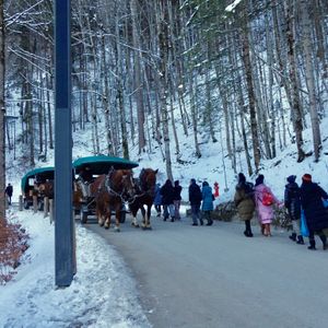 到着後のお城までの道のりは、冬場でシャトルバスの運行が無く、山の上まで徒歩でってって事で、かなり歩きました。流石に、帰りは実費で馬車で下山しましたが、なんと、その日の万歩計は2万4千歩超‼️とビックリな運動量。