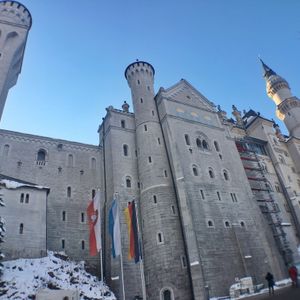 ヴィース教会はのどかな牧草地にあり、外観も白くシンプルな造りでこれが世界遺産?という感じだったが、内部は色鮮やかで繊細な装飾が一面に広がり本当に美しかった。ノイシュバンシュタイン城に登るルートは徒歩か馬車かシャトルバスがあるが、この日は最高4℃程だったのでバスで移動。閑散期はバスが来ないこともありその時は徒歩になるとガイドに言われたが15分ぐらい待って来てくれたので歩かず済んだ。場内は開始時間厳守のイヤホンガイドツアーで人数も多く混雑しておりじっくり見学という感じではなかった。麓にあるアルプ湖は透明度が高く静かで綺麗だった。