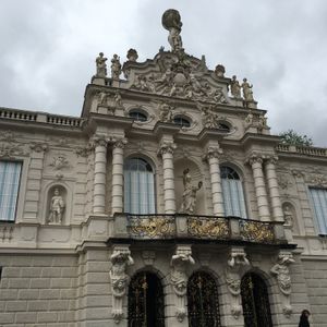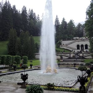 最終目的地はリンダーホーフ城です。生憎の雨でしたが、森の中を進むとこぢんまりとしたヴィラのようなお城が現れます。城前にある噴水を見た後、城内に入りました。