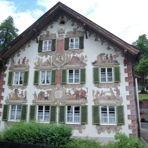 3つめの目的地はオーバーアマガウという小さな町でした。家壁のフレスコ画や10年に一度町民のみでキリスト復活の演劇をする、ということで有名な町とのことです。