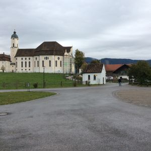 当日は、あいにくの天気でノイシュバンシュタイン城についたときは風も強く、傘が役にたたないほどでした。中庭で入場時間を待っている間も寒くて、周りの景色の写真をとる余裕がありませんでした。やはり、夏から秋がベストシーズンなのでしょう。また、次回来てみたいと思います。個人で鉄道を利用していくことも検討しましたが、ヴィース教会にもぜひ行ってみたかったので、ツアー参加を決めました。教会内部は本当に素晴らしいものでした。内部が少し暗い感じがしまたが、天気がよければもっと外からの採光がありさらに美しいものだったかなとおもいます。