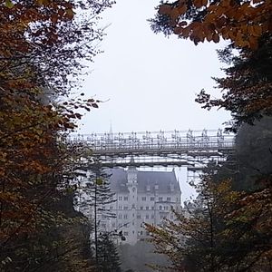 ノイシュバンシュタイン城自体は雨に降られ霧がかかりかえって幻想的な風景で素敵でしたが、事前の告知通り、マリエン橋は工事中で少し残念でした。