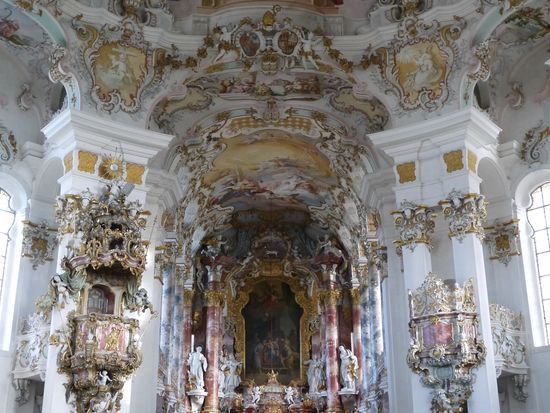 ヴィース教会は世界遺産にも登録され、ロココ建築の傑作とされ