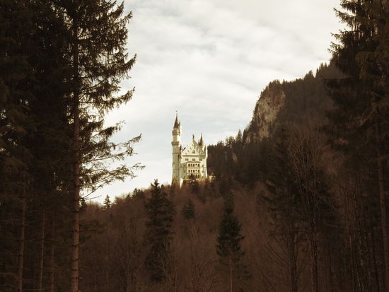 一日で、行きたい所を回れるドイツに来たら外せないツァーです。到着前にバスの中から山の上にあるお城が見えて来ます。写真撮影の為にバスを止めてくれました。入場は予約制です。いったん解散した後、お城の入り口の集合場所で予約時間に再集合します。その間、軽く食べたり、ビールを飲んだり、日本人と中国人向けのショップで買い物ができます。お城柄のフェイラーを楽しみにしていたのですが、7枚セットでバラ売りはしていませんでした。お城の入り口まで徒歩で15分くらいでした。肌寒い日でしたが、途中で汗ばむくらい坂道を歩きました。次々人が集まり、お城の中に入って行きます。ガイドさんの解説があって良かったです。