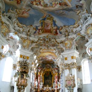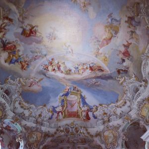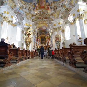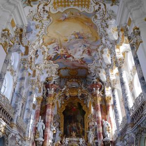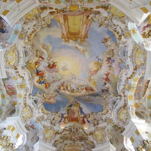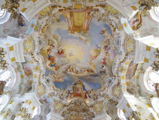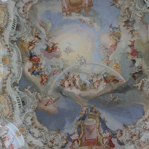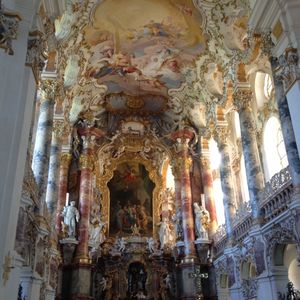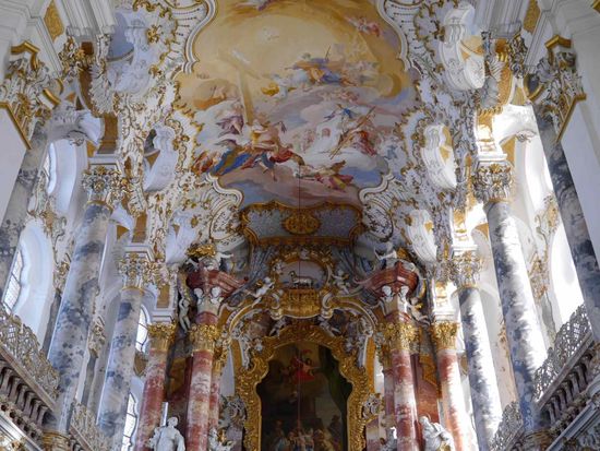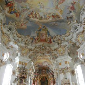 ノイシュバンシュタイン錠メインで行ったツアーでしたが、ヴィース教会の素晴らしさにもとても感動しました。天井至る所に描かれている絵は、広さと綺麗さに圧倒されるものがあり、入り口から入るとしばらく動けませんでした。