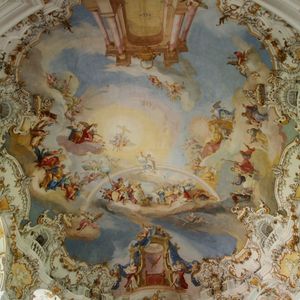 外見は何の変哲もないシンプルな教会ですが、内部はギンギラのロココです。短い滞在時間ですが、教会周囲のバイエルンの田舎風景とのコントラストが強烈でした。