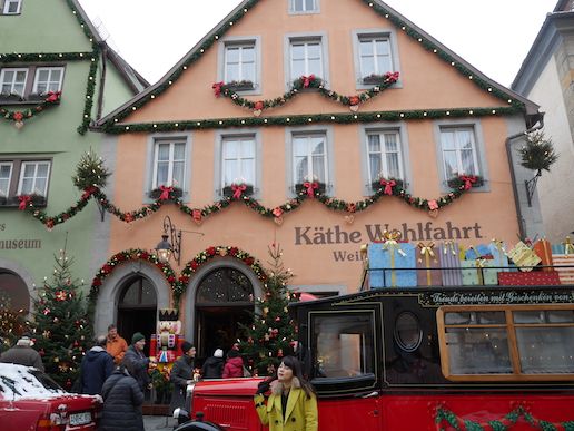 ローテンブルグは、電車の乗り継ぎなどでとても行きにくいところですし、冬にはバスも出ておりませんのでこのツアーに参加しました。 ニュルンベルグの有名なクリスマスマーケットも楽しみにしておりました。 ところが、ローテンブルグでの見学を終える頃に大雪に見舞われ、吹雪く中バスの駐車場まで歩きました。 そして天候状況はますますひどくなり、高速道路に除雪車もすぐには出ず、バスの運転手さんも安全上、ニュルンベルグまで行くのは得策ではないと主張し、 ガイドさんと旅行会社さんと乗客との相談の上、途中で引き返して代わりにハイデルブルグに向かうことになりました。 翌日、高齢の母の日本へのフライトを控えておりましたので、 あまり無理をしたくなかったので助かりました。 このようなことはガイドさんにとっても初めてのことだったそうです。