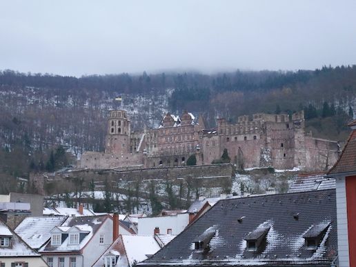 幸い,ハイデルベルクに向かう途中から雪が小降りとなり,ハイデルベルクのクリスマスマーケットを見ることができました。