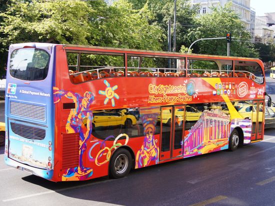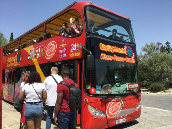2階建てオープントップバスはアテネ観光の大定番!日本語オーディオガイド付きで、観光名所近くにある停留所から自由に乗り降りできるのでアテネ市内の移動にも便利。賢くアテネを観光するならコレ!
