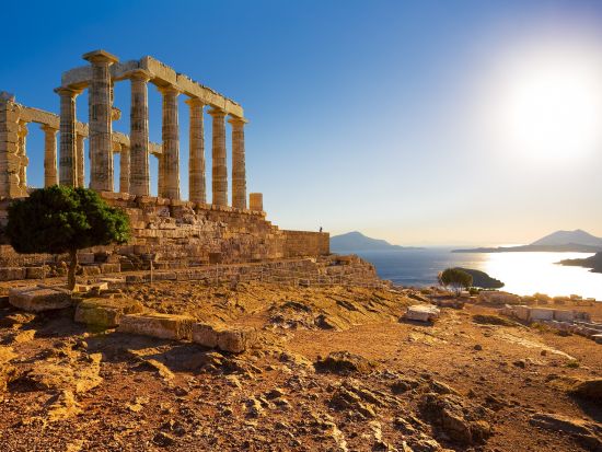 エーゲ海に臨むスニオン岬から夕陽を鑑賞
