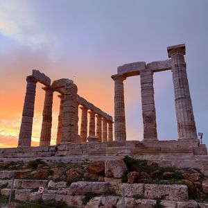 美し夕日に映るポセイドン神殿の神秘さに古代人の偉大さが改めて感じております。